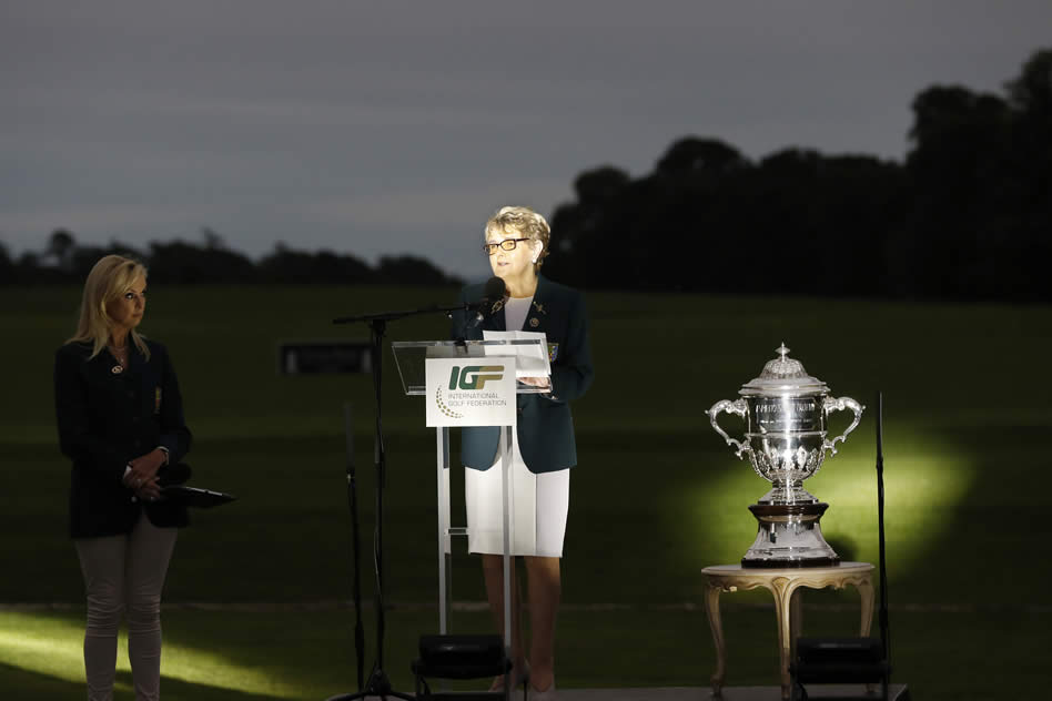 Galería de fotos de la 2da ronda del World Amateur Team Championship en Carton House en Irlanda, ahora las líderes son las Estadounidenses con Rd de 130 para ponerse total 272 (-18/ 142-130) por un golpe sobre la República de Corea con 273 (-17/ 140-133), y por dos golpes sobre el 3er lugar de Japón con 275 (-15/ 136-139).