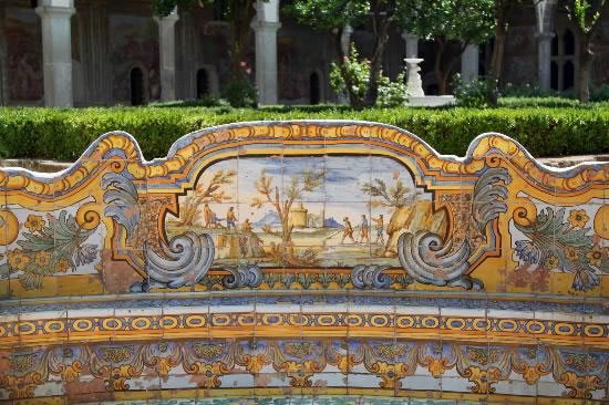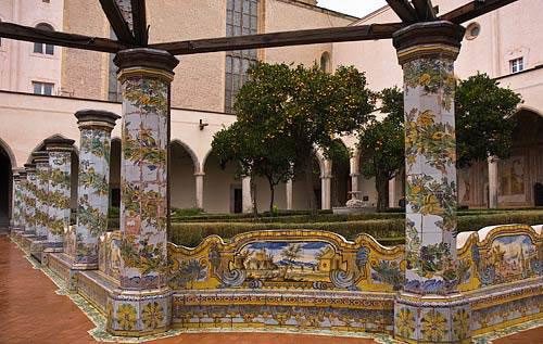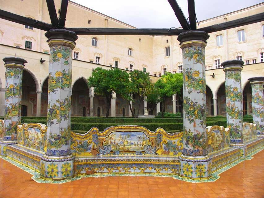 Hace pocos años, se descubrió alguna evidencia que apoyaba que el golf fue introducido en Italia siglos atrás. En el jardín del convento en la Iglesia de Santa Chiara en Napolés, construido entre 1.310 y 1.340, bancos estaban decorados con baldosas mostrando cuadros de la vida diaria alrededor de la ciudad, con escenas del mercado, y vistas de pescadores y agricultores, pastores y cazadores, bailarines y hortaleros. La guía que mostraba el claustro dijo, “esto era la TV de las monjas quienes estaban en reclusión, con lo cual esto les permitía ver la vida exterior en estos murales,” y uno de estos bancos tienen una pintura que presenta una muestra del golf de la época en Italia.