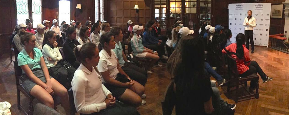 Annika Sorenstam llegó cerca del mediodía al club anfitrión y no tardó mucho en concitar la atención de jugadoras y publico en general, que rápidamente solicitaron su autógrafo y tomarse selfies con ella. La consagrada sueca, ganadora de setenta dos títulos del LPGA Tour y diez Majors, almorzó junto a Velio Spano, Director Ejecutivo de la AAG, Eduardo Botte, Presidente de la Comisión de Reglas y Reglamentos, y Mark Lawrie, Director del R&A para América Latina e Islas del Caribe.