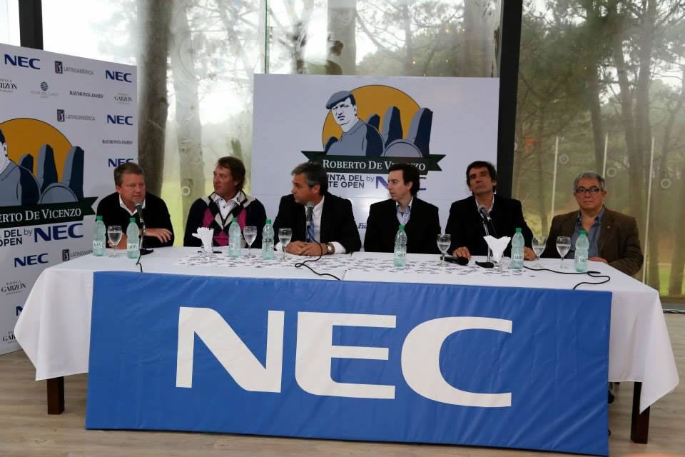 Se realizó este lunes el lanzamiento oficial del Roberto De Vicenzo Punta del Este Open Copa NEC que es parte del calendario oficial del PGA TOUR Latinoamérica y se llevará a cabo del 26 de octubre al 1° de noviembre en el Club del Lago Golf. La presentación oficial contó con la presencia, entre otros, de Jack Warfield, Presidente del PGA TOUR Latinoamérica; Álvaro Canessa, creador de este campeonato; Nicolás Ortolani, Presidente del Club del Lago Golf y Gabriel Figueredo, Gerente del Club del Lago Golf.