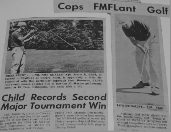 El Cabo Jamie Child llegó a ser cabo en los “marines” de los Estados Unidos a finales de los 60’s cuando fue a Vietnam, observando, “lo que yo no había tomado en cuenta era que con el Green Card estaba sujeto a ser llamado al servicio militar como cualquier ciudadano americano. Al ser llamado, resolví ingresar a los US Marines en vez del ejército. En mi primera base en Carolina del Norte, con un excelente campo de golf, fui visto mi primer día jugando por el Mayor encargado del equipo de la base, y de una vez fui incluido en él. Mientras estuve en los Marines, gané todos los torneos importantes. El All-Marine con score 292 jugado en El Toro, California en 1966, y el Fleet Marine Force en North Carolina.”