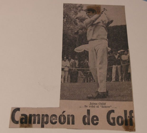 Aficionado exitoso y profesional de golf desde 1963, Campeón en su país, fue a la Guerra y se tituló en el All-Marines de 1966, y luego jugó en el Tour Europeo al lado de Peter Thompson, sin duda, el aventurado pionero colombiano Jaime Child, nacido en Bogotá, es un episodio obligado en la historia de este deporte en Colombia