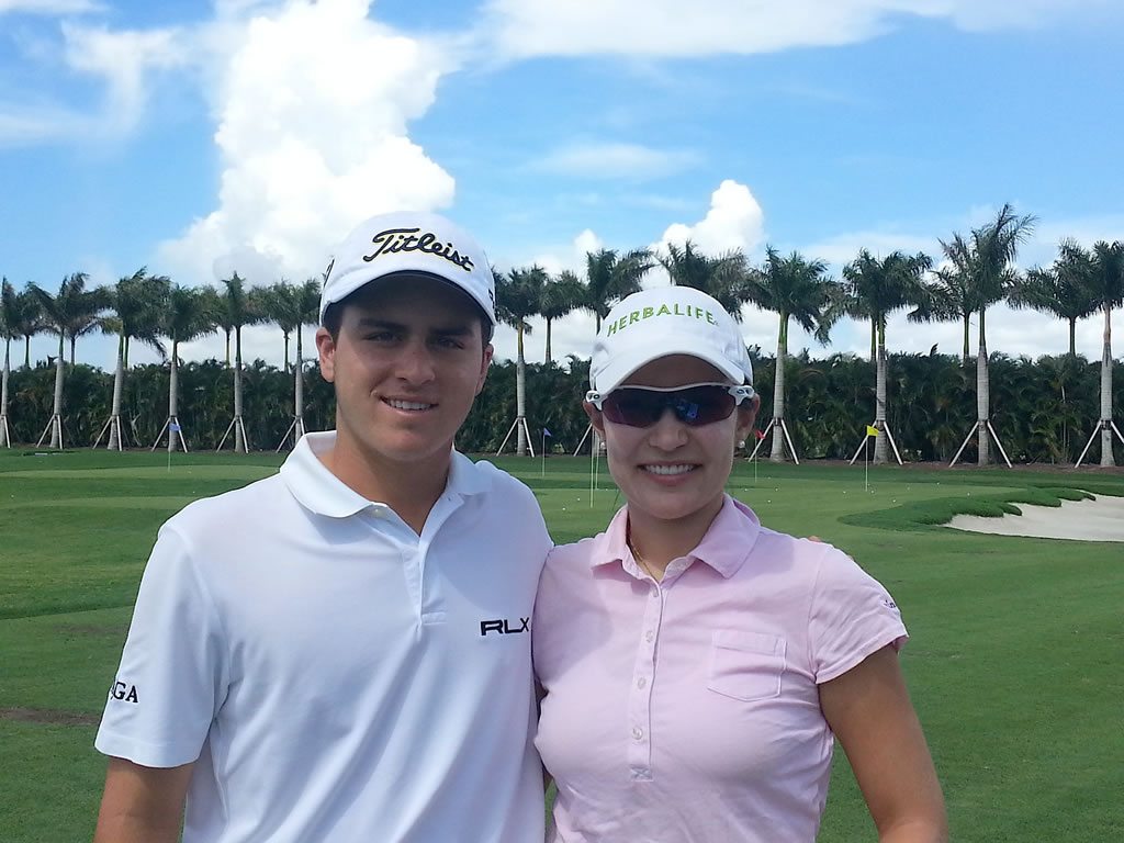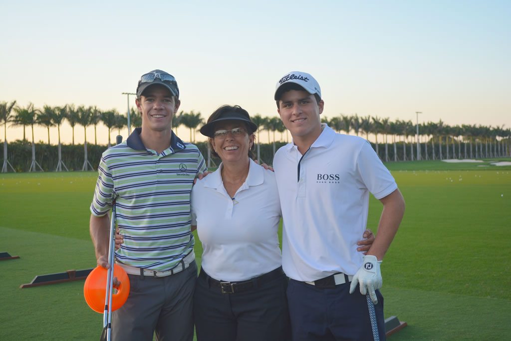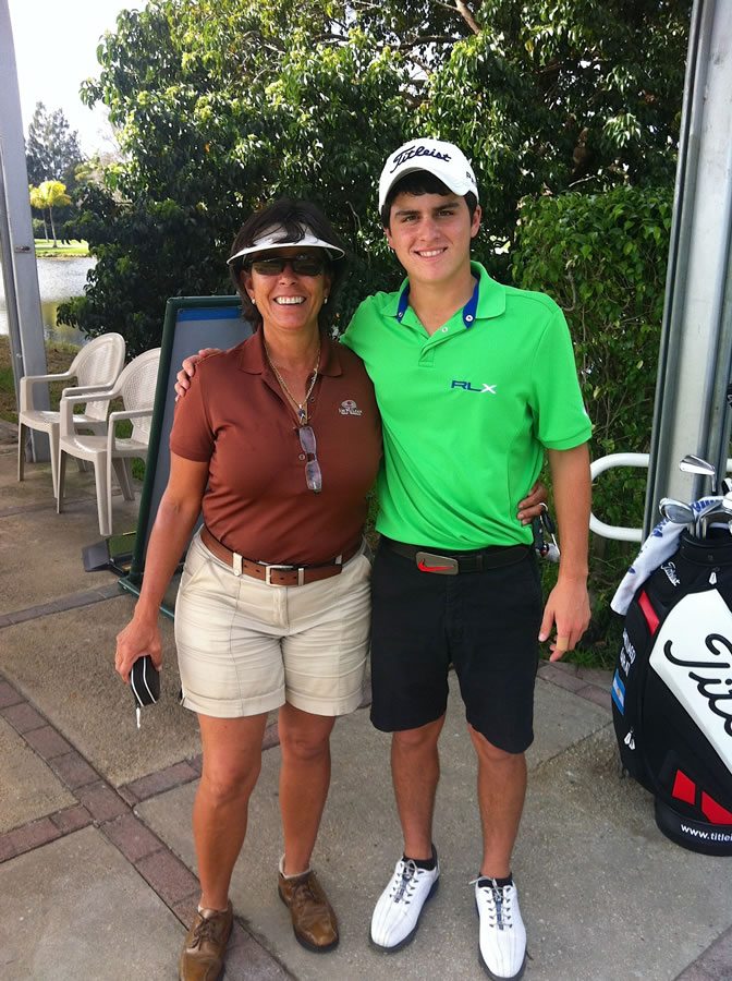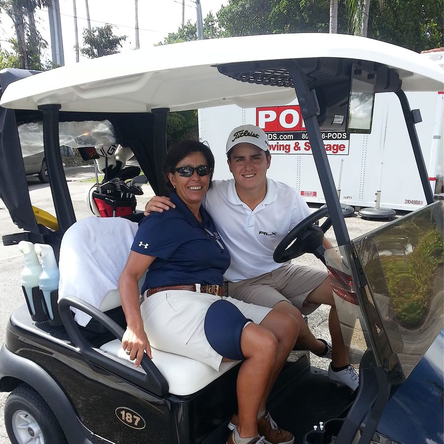 – “Realmente a él lo vi por primera vez a los 7 años (anexo copia de una de sus primeras clases.) Me impactó lo natural y sencillez de su swing. Desde el principio no sólo le comentaba a él, sino a sus Padres, que tenía un gran potencial y que podía llegar muy lejos. Su concentración realmente es uno de sus talentos. A sus escasos 7 años ya se veía que era competitivo.Lo más interesante es cómo llegué a darle clases. Uno de los requerimientos en Jim McLean es tener tu propia cámara de video. Yo estaba en Brandsmart comprándome mi propia cámara, y Pichu, su hermano y sus Papás estaban también preguntando por cámaras. Yo, como buena conversadora, dando más información de la requerida al vendedor y haciendo innumerables preguntas para poder escoger una cámara que yo pudiera usar filmando el swing de golf. Finalmente, después de escoger la cámara, procedí a pagarla y allí me encontré nuevamente con ellos, y comenzamos a conversar. Ellos me preguntaron que si trabajaba en Jim McLean y les dije que sí. Luego ellos comentaron que si yo les podía dar una clase a sus dos hijos, y obvio la respuesta fue positiva e inmediatamente les di mi tarjeta con toda mi información. El resto es historia.”