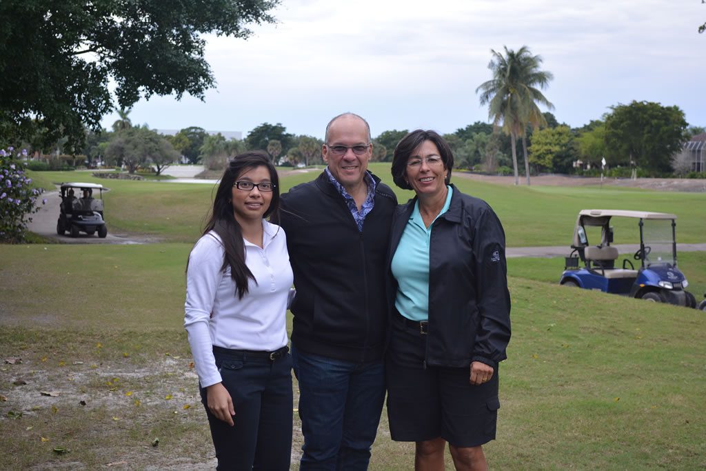 – “Yo nací en Armenia, Quindío, Colombia. Mi Padre Dr. Ernesto González fue uno de los pioneros del golf en Armenia. Mientras trabajaba en la Octava Brigada de las Fuerzas Armadas de Colombia como médico, tuvo la colaboración de soldados que fueron los que construyeron los primeros 9 hoyos del Club Campestre de Armenia. Antes de esto había un grupo de más o menos de 8 personas que viajaban hasta Pereira para jugar los fines de semana. En ese entonces el viaje era de una hora. Una vez terminada la cancha, mi Padre jugaba todos los fines de semana. Mientras él jugaba golf, yo jugaba tenis, el cual jugué a nivel nacional. A los 15 años una amiga de mi Madre, que era golfista, me invitó a jugar un torneo de golf, y lo llamaban “El Chambonato de Golf” para promover a nuevos jugadores. Cuando fui a darle el primer golpe, organizadores y profesores estaban presentes. Ohhh sorpresa, hice un swing y le pegué a la bola más o menos 200 yardas. Al final del día terminé ganándole a la jugadora que me había invitado, y terminamos ganando el torneo. A partir de ese momento, cada vez que yo llegaba al Club a jugar tenis, el profesor de golf José María “Chepe” Ayala venía hasta las canchas de Tenis y me invitaba a darle bolas de golf, el cual terminaba en clase de golf. El insistía que debía dejar el tenis y ser golfista, hasta en ocasiones me decía que yo era mejor para el golf que para el tennis, y eso que competía a nivel nacional. Finalmente a los 18 años, él me puso en jaque mate y me dijo que me tenía que decidir por un solo deporte y que esperaba que fuera el golf. Durante todo este tiempo él nunca me cobró una clase, y yo creo que esta es la razón por la que yo no cobro honorarios a personas que veo con talento y que para ellos es difícil pagar las clases. La cual no fue mi caso, pues el vio el talento y esa fue la forma de realmente meterme en el golf 100%. Hoy en día, soy la jugadora que soy gracias a él y a mi Padre, de no haber tenido tan excelente profesor tal vez no hubiera tenido la carrera que he tenido hasta el momento.”