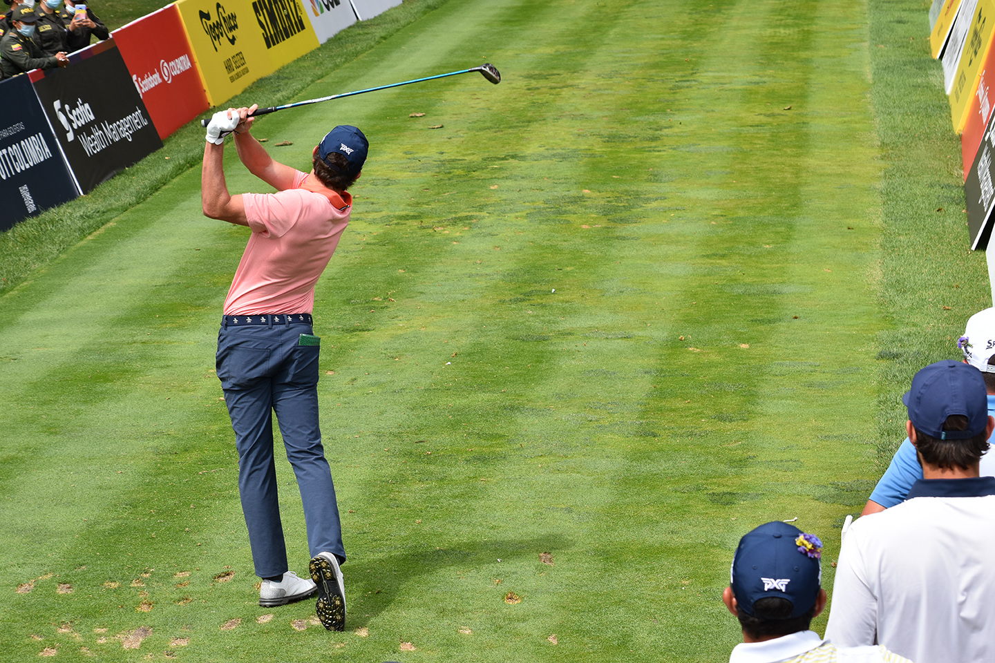 El colombiano Nicolas Echavarría, que inicio jugando la primera vuelta con -4 hasta el hoyo 7 donde hace su primer bogey, para terminar con una ronda de 69 golpes y quedar con (-11) y ubicarse en la posición 13.
