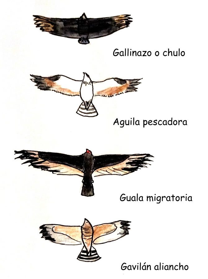 Las corrientes térmicas de aire caliente son columnas de aire ascendente. Para entenderlas, basta observar los grupos de chulos o gallinazos que planeando dibujan círculos en el cielo. Si se vive en la región andina, entre septiembre y noviembre, podría tratarse de un grupo de rapaces en su migración anual; se pueden diferenciar aves grandes de alas grandes y gavilanes pequeños de alas redondeadas en los extremos.