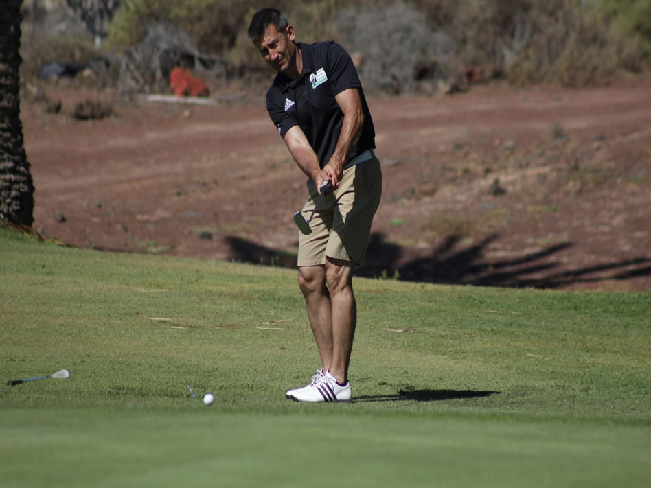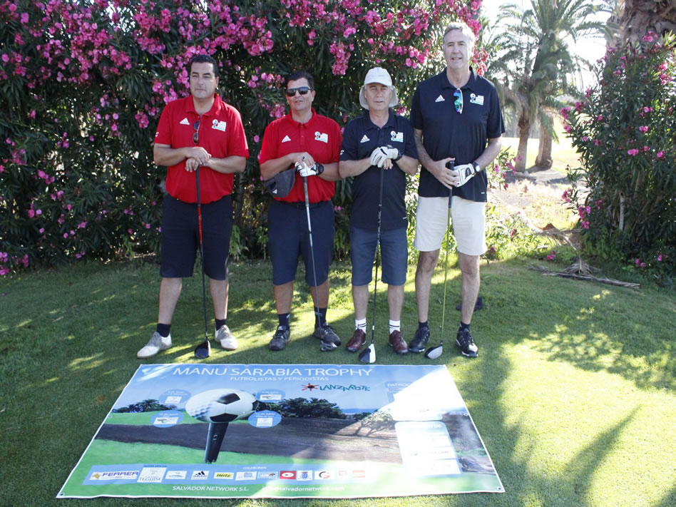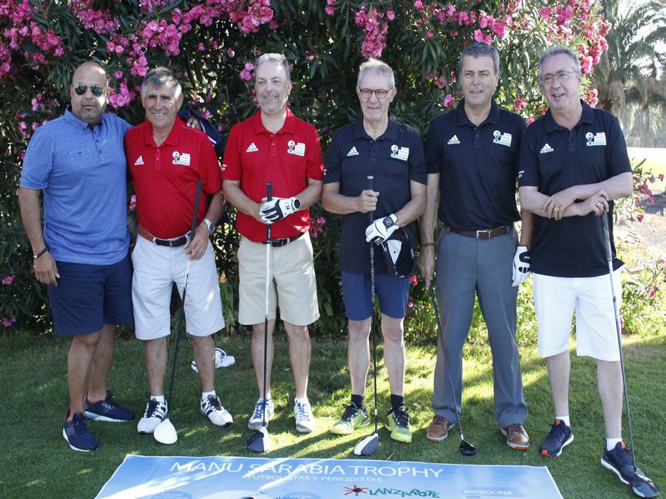 Jornada agradable y divertida la vivida por los participantes del Manu Sarabia Trophy de Golf, torneo que se celebra en las instalaciones de Costa Teguise Golf desde la jornada de este viernes con la presencia de ilustres visitantes relacionados con el deporte nacional. Los deportistas y periodistas, capitaneados por el ex narrador de TVE José Ángel de la Casa, se unificaron en esta primera jornada para batirse en duelo a un combinado canario, capitaneado por el delegado insular de golf, Jason Pérez.