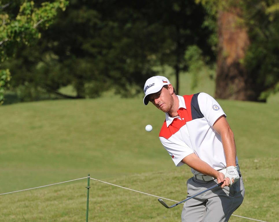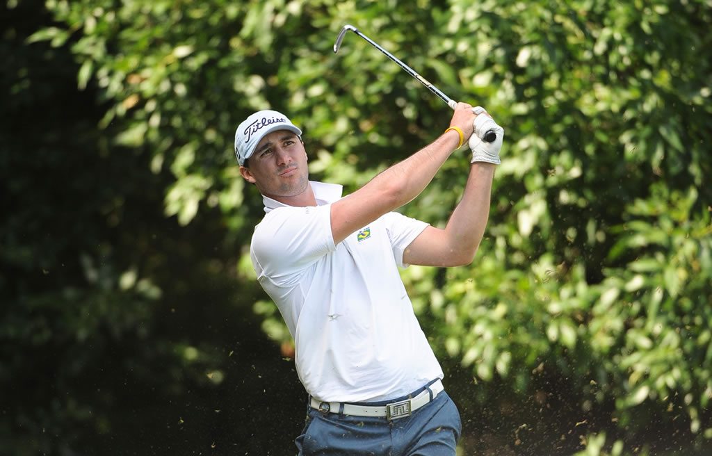 El brasileño aprovechó las mejores condiciones del campo por la mañana y aunque salió por el hoyo 10, la parte más difícil del trazado de par 72 de Pilar Golf, enseguida acumuló una seguidilla de 5 birdies en seis hoyos para treparse a la punta del torneo. En sus segundos nueve hoyos, el campeón amateur de Brasil en 2013 y 2014 que nació hace 24 años en Río de Janeiro, sumó tres birdies más y un bogey para sumar 136 golpes (-8) y superar por uno al chileno Matías Domínguez y al argentino Joaquín Bonjour.