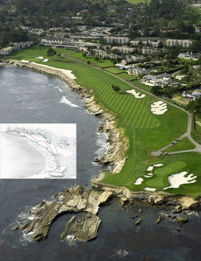 En esencia, en este diseño el hoyo ofrece opciones para llegar al green con castigos estratégicamente situados para que cada quien, según su habilidad y nivel de juego, seleccione su ruta.