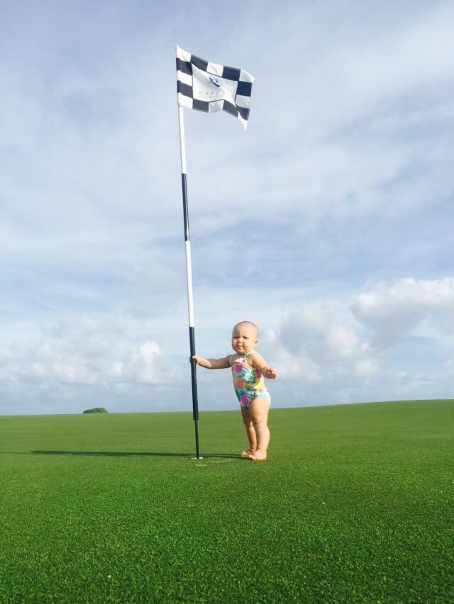 Caracas, 1 de Abril 2015 (Fairway).- El pasado miércoles nos pasaron unas fotos espectaculares de una niña en Cap Cana disfrutando del green de uno de sus hoyos, pero instintivamente se dirigió directamente a la bandera del mismo, y tomó el asta y no la soltó más, allí se quedó disfrutando del momento, lo que para ella pudo ser un birdie o par, no lo sabemos ni lo sabremos, pero lo que si sabemos es que parecía que estaba en su mejor ambiente, cómodamente vestida de playa exhibiendo su colorido traje de piña colada y gozando de tener sus pies sobre en el engramado, es parte de lo que queremos compartir con nuestros lectores y seguidores amantes de golf de habla hispana en el mundo!