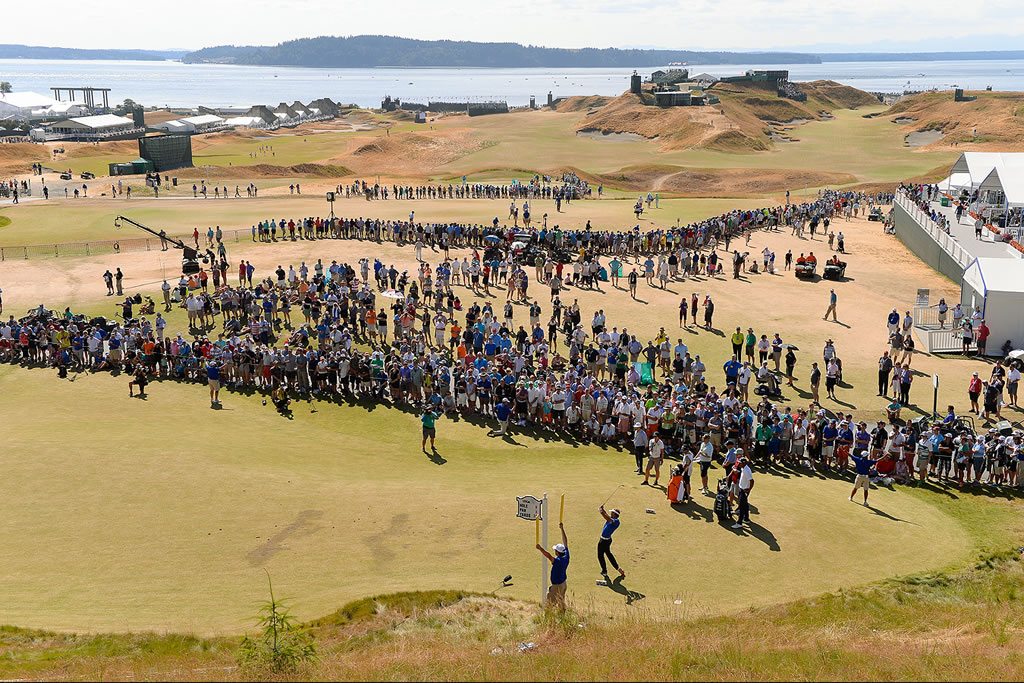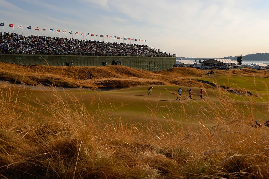 Siete del Top-8 de la cartelera a los 54 hoyos están en el Top-10 con el putt, Spieth E6, Johnson E3, Day E3, Oosthuizen E6, Smith 2do, Lowry E6 y Holmes E6. El hoyo 12 ha gestionado 12 águilas en las tres rondas que van, siendo el número más alto en un solo hoyo en el US Open desde 1985 cuando comenzaron las estadísticas del USGA, observando que en el 2014 se registraron 17 águilas en el 5to hoyo de Pinehurst No. 2, para un total de 26 águilas en total en Chambers Bay en las tres rondas, siendo la mayor en Pebble Beach que se hicieron 31 en 1992. El hoyo 5 Par-4 fue el más difícil en la tercera ronda con un promedio de 4.72 sin ver ningún birdie. Quedan 8 jugadores bajo-par luego de cerrar las acciones del sábado.