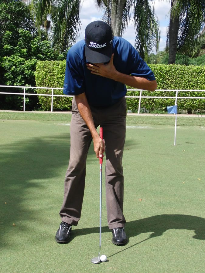 La posición ideal de los ojos es encima del putt o en la parte de atrás de la pelota, de manera que al voltear, el jugador pueda ver desde atrás y encima de la línea de tiro. No es así como apuntaría un rifle a su objetivo?