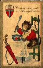 En el dibujo adjunto podemos ver a Theodore Roosevelt, Mr. Teddy Bear en la izquierda y a William Howard Taft (Mr. Billy Possum) en la derecha. Las palabras “Good Bye Teddy” son escritas debajo de los dos animales danzando. Mr. Taft era republicano, y como los republicanos era frecuentemente considerados el Partido de los ricos, Billy Possum era mostrado en todas las posibles situaciones, cada una ideada para mostrar poca atención en ese aspecto. En otra imagen aparece Billy Possum tomando su sopa con una larga cuchara, y recostados sobre la mesa aparecen los palos de golf. Nosotros no debemos dejar que la política se meta en el medio de un buen juego de golf, y la tarjeta dice: “Arrived here at just the right time.” Igualmente podemos ver en al parte superior izquierda la imagen de la Casa Blanca.