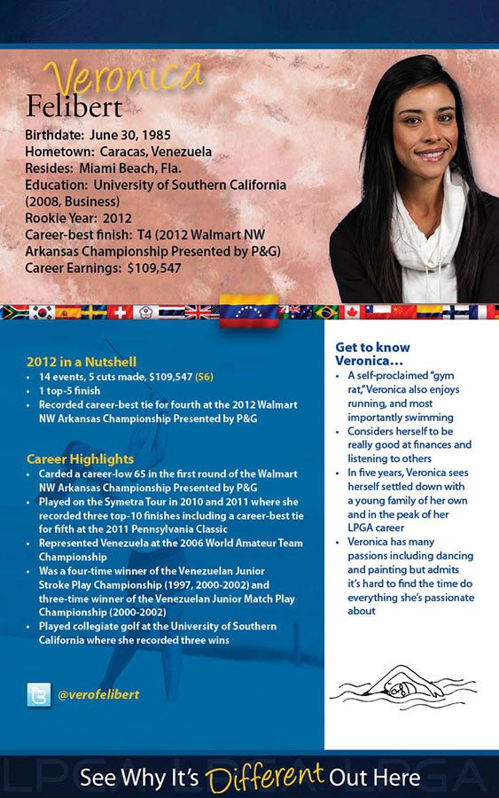 Verónica Felibert, es la inspiración del Golf femenino en Venezuela porque ha demostrado que SI se puede y que ella pertenece a las grandes ligas del golf mundial, LPGA.