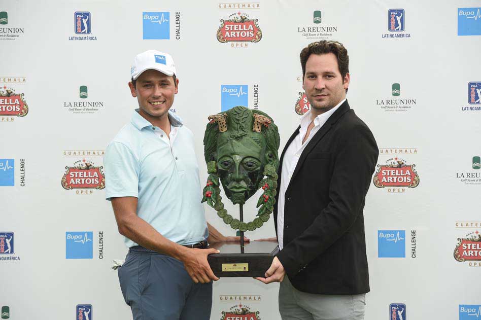 Antigua Guatemala, Guatemala, 20 de Marzo 2018 (dev.revistafairway.com vía www.pgatourla.com).- En una semana en la que llegó a Guatemala sin certeza de poder jugar el torneo inaugural de la temporada 2018 del PGA TOUR Latinoamérica, el estadounidense Ben Polland resultó ser cómodamente el mejor jugador del Guatemala Stella Artois Open. Su lugar en el field lo aseguró ganando la clasificación abierta del lunes y el torneo lo ganó por cuatro golpes con un sólido total de 268 golpes (-20/ 68-65-65-70). Con esa cifra, el campeón mejoró en cinco golpes el récord de 72 hoyos del campo de La Reunión Golf Resort.