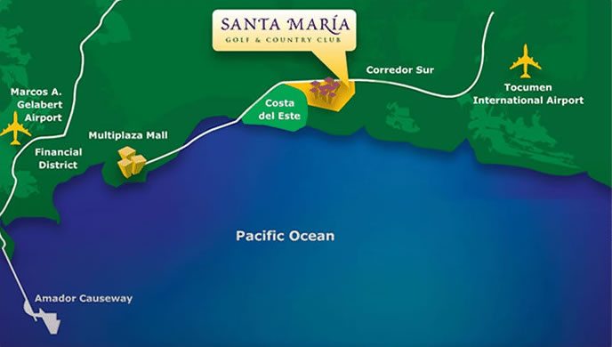 Santa María es una comunidad de golf ubicada en Panamá que ofrece diversos productos inmobiliarios alrededor de una cancha de clase mundial. Nicklaus Design, la reconocida firma arquitectónica dedicada al diseño de canchas de golf fundada por el legendario golfista profesional Jack Nicklaus, ha diseñado un campo de golf de 18 hoyos que pasará por las áreas residenciales, parques y lagos de Santa María Golf & Country Club. Para mantener la exclusividad del juego, la membresía en la cancha de golf será restringida a aproximadamente 550 miembros que deben ser dueños de propiedades dentro de Santa María para calificar a una invitación para unirse a este distinguido club.