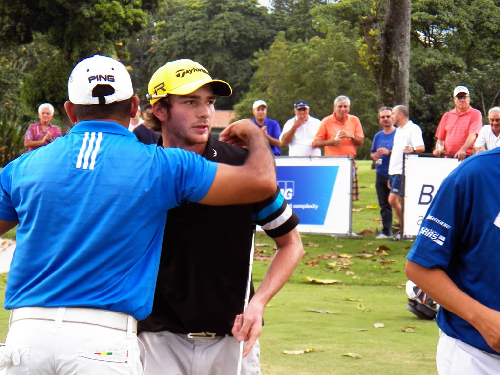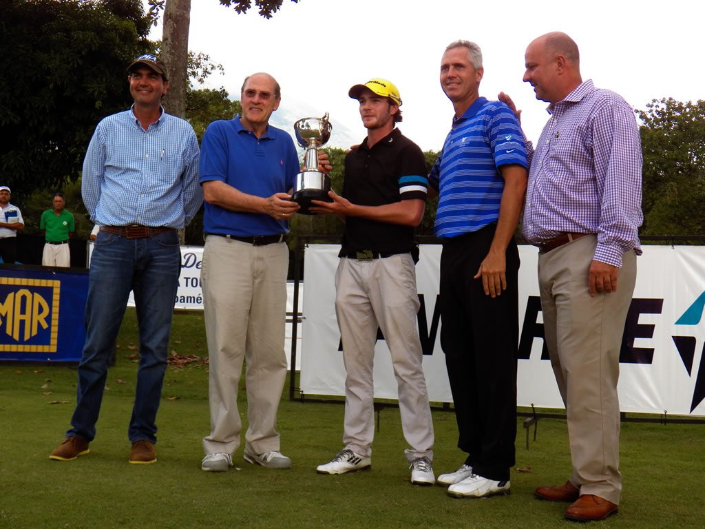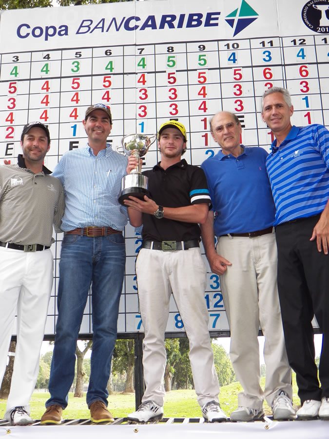 PGA de Venezuela, 16 de Noviembre 2013.- Alejandro Garmendia se tituló Campeón Nacional de Profesionales por segunda ossible con 6 bajo-par (278/ 69-73-67-69), luego de que en el 2011 se convirtiera en el ganador más joven del título nacional profesional con más tradición en nuestro país. Garmendia jugó una ronda de 69 golpes con cinco birdies, 3 bogeys y 10 pares para ponerse en carrera por su título, demostrando que se encuentra recuperado de la ossib que lo aquejaba. “Muy contento de volver a ganar, luego de recuperarme de la ossib en la muñeca izquierda. Sabía que tenía que jugar un golf muy bueno hoy, porque Otto llevaba cuatro torneos consecutivos. Me enfoqué en mi estrategia de juego, me relajé y traté de mantenerme calmado. En el hoyo 11 Otto me llevaba tres golpes, pero hice birdie al 13, 14 y 15 y él hizo bogey al 14 y doble al 15, y se volteó la cartelera. Sabía que tenía tres de ventaja, y jugando mi juego, ossi cerrar tranquilo el torneo,” comentó el joven profesional, que por segunda vez juega y gana este torneo, destacando que el caddie fue su Papá, Antonio, como es costumbre.