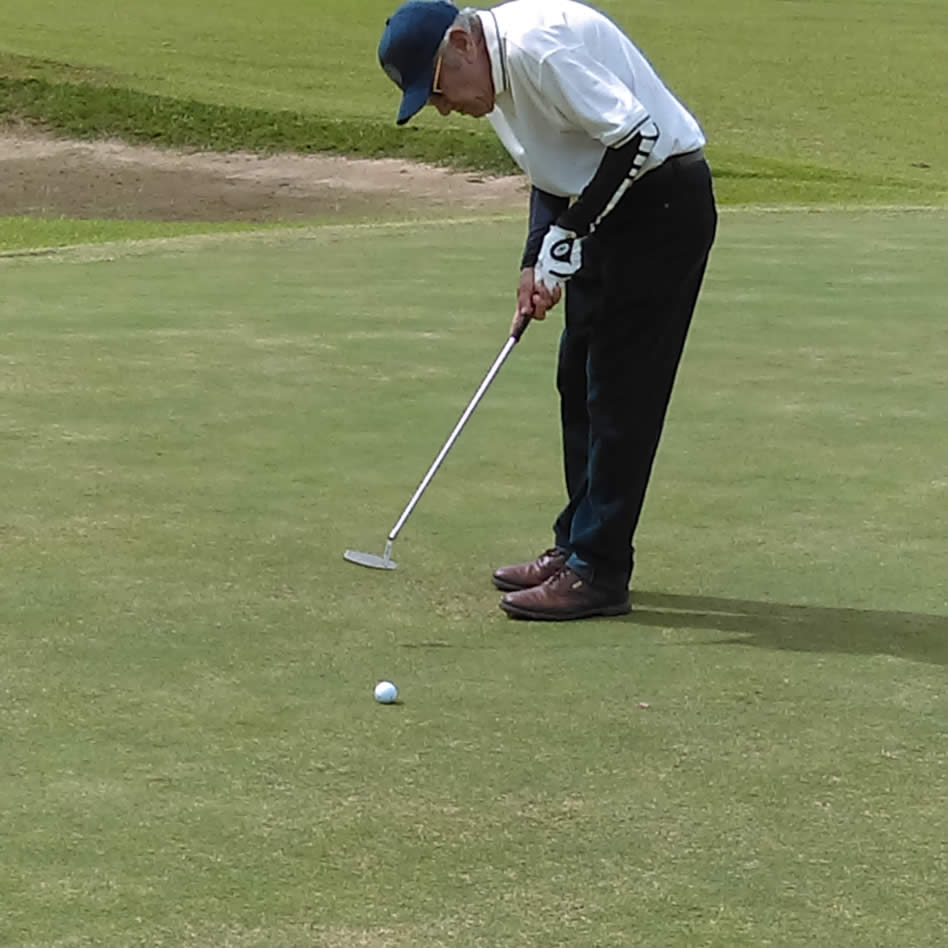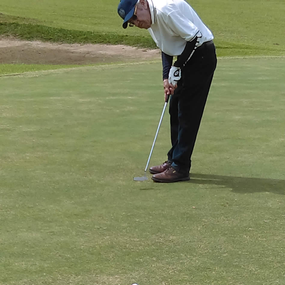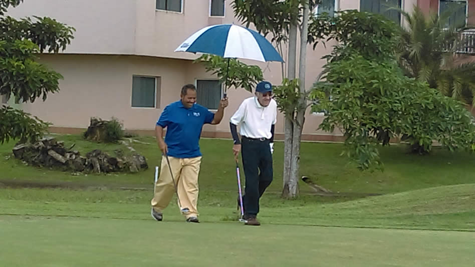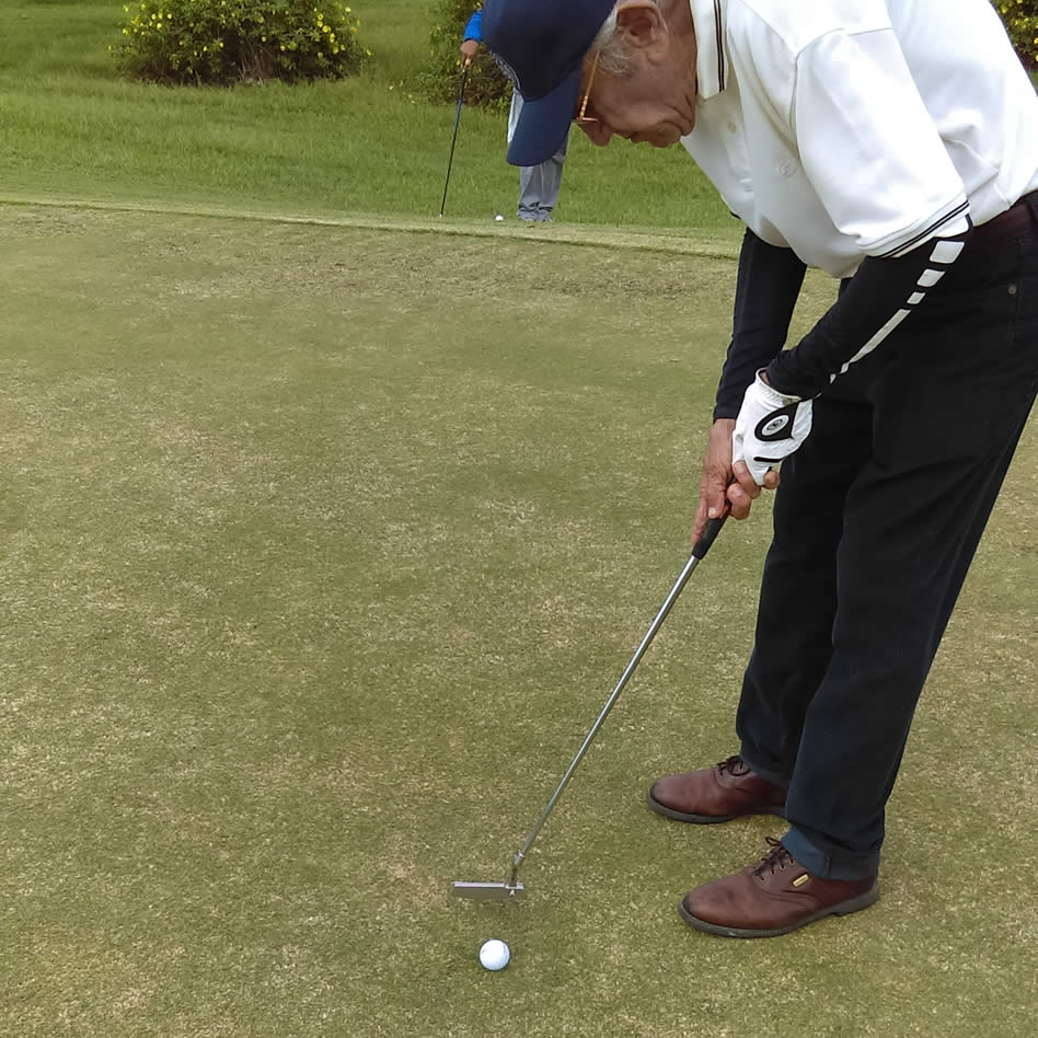 105 Años (91, dicen algunos … ) de nuestro ídolo local, Sr. Manuel Peñaloza, quien también hizo acto de presencia y jugó 18 hoyitos más para su inmensurable palmarés y hoja de servicios al golf, deporte por él amado y adoptado desde muy temprana edad con la mayor humildad, honestidad y temple.