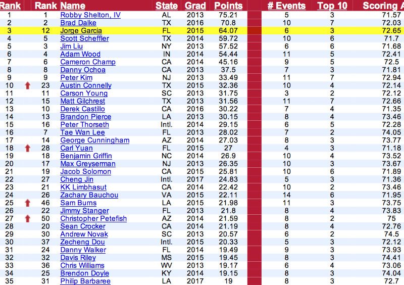 Ahora con dos victorias y un segundo en los últimos 4 eventos de la AJGA asciende al 3er lugar del Polo Ranking y al 11ro del Golfweek-Titleist Junior Rankins y se ubica entre los mejores juniors del mundo
